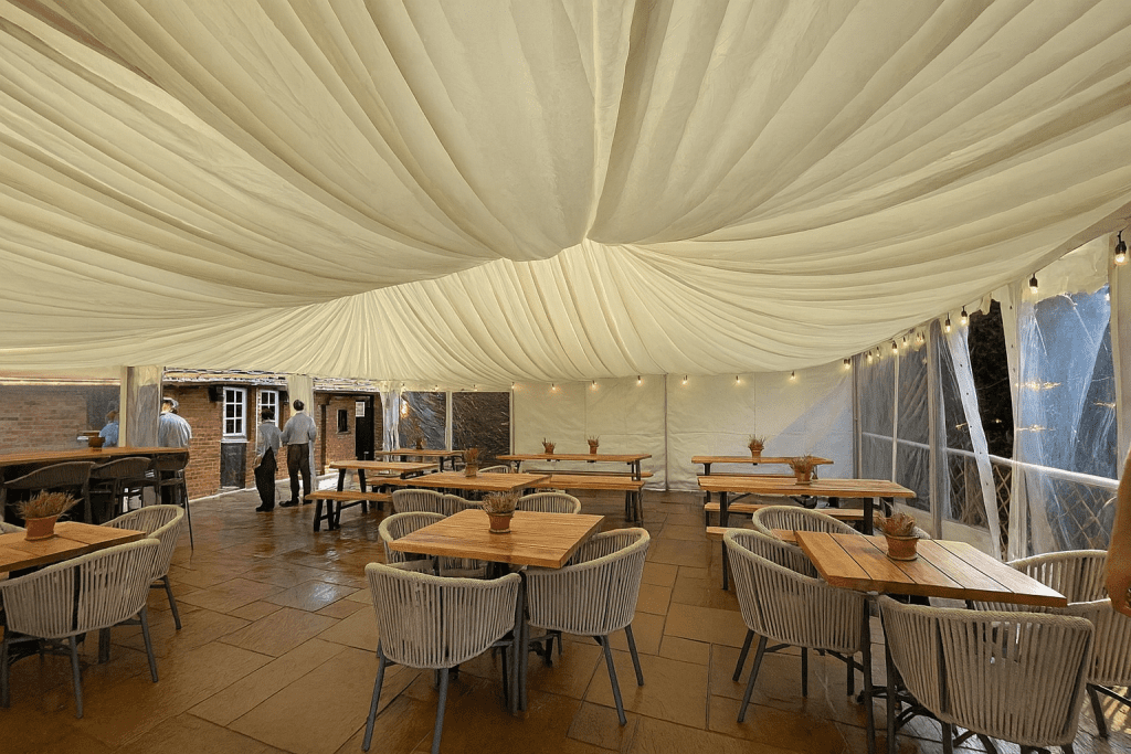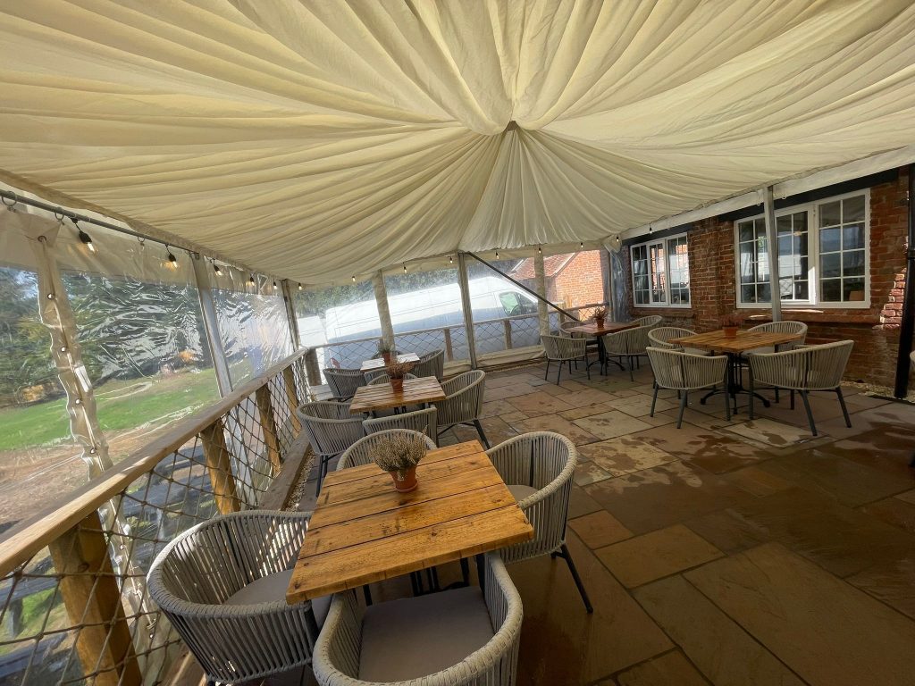 We installed a fitted marquee system that sat perfectly over the patio, giving the pub: