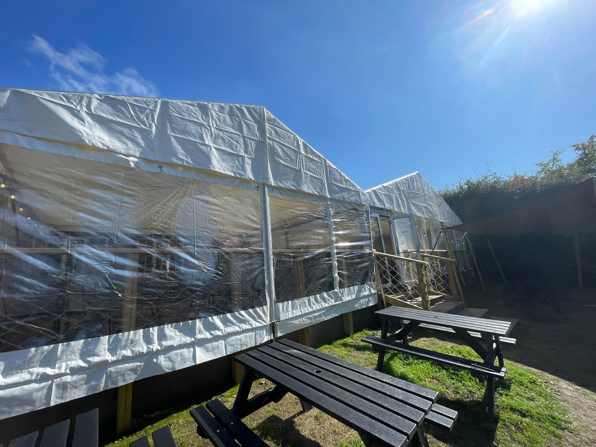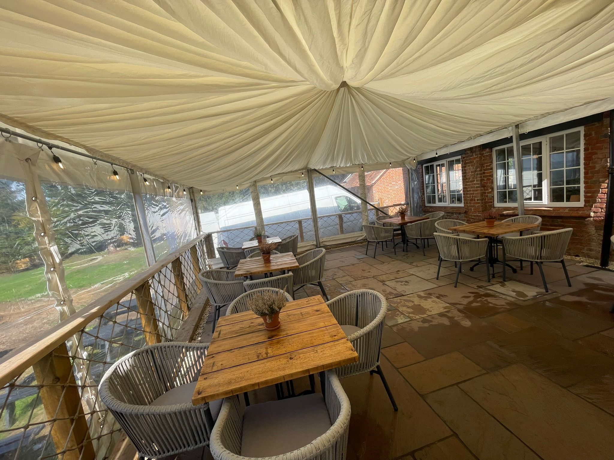 We installed a fitted marquee system that sat perfectly over the patio, giving the pub: